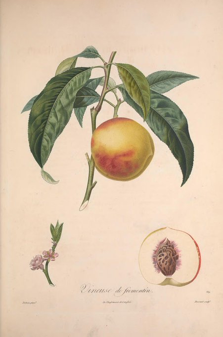 The only thing that might rival the beauty of these botanical illustrations of stone fruit is their flavor. Who else is excited for peach season?!? Find more in "Pomologie française" (1846) https://t.co/gZBmF6s3vc in @BioDivLibrary!