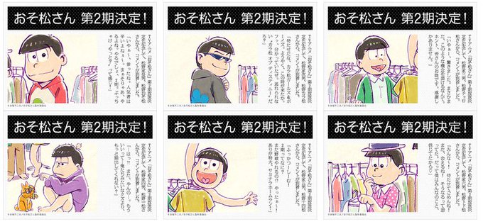 →『おそ松さん』TVアニメ第2期 放送決定!6つ子声優陣による喜びのコメントも!! | アニメイトタイムズ https://t.co/2zvHnLPqND