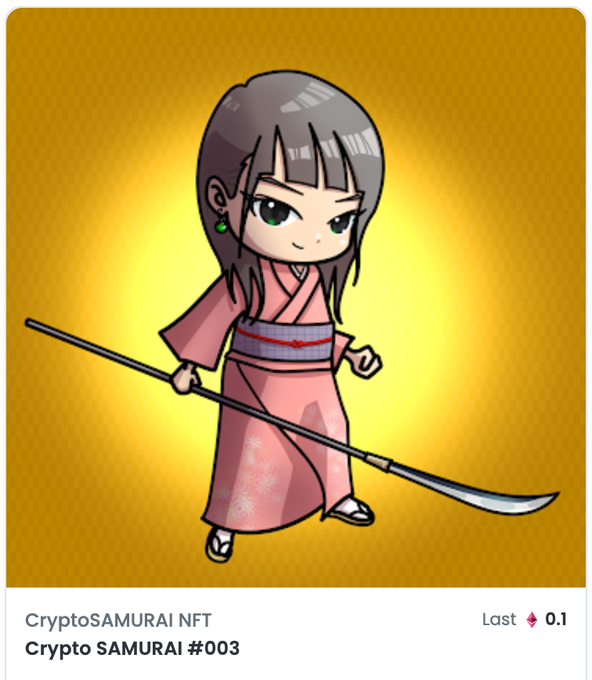 #cptSAMURAI 003が、0.1ETHで無事に旅立っていきました。ありがとうございます!次の作品も楽しみにしておいてください。