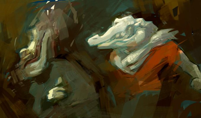 Alligator Fight. Sort of speed painting, maybe an hour and half. Getting inspired by Phil hale, Edwin Dickinson.