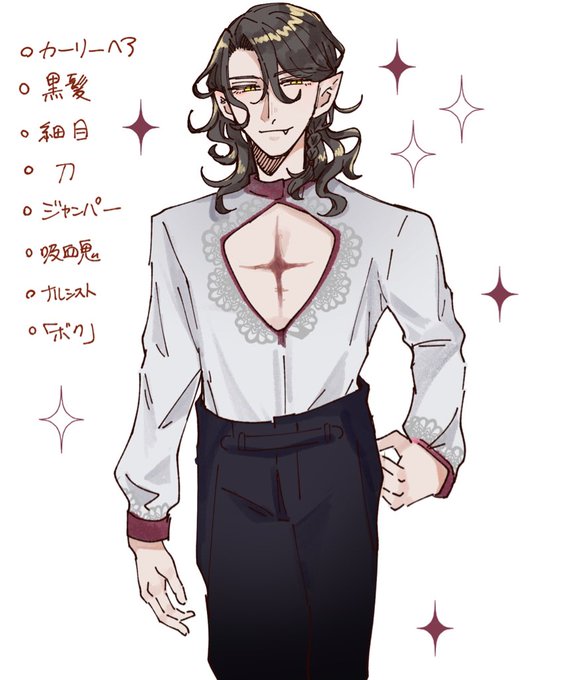 紫!!ジト目!太眉!舌ピ!ギザ歯!猫ちゃんピアスに紐止め!癖毛!タートルネック!ドデカドラゴンちゃん!デカジャンパー!垂れ袖!短パン!膝!絆創膏!首元と指のタトゥー!全部!!!ママは最強なので!!!!
