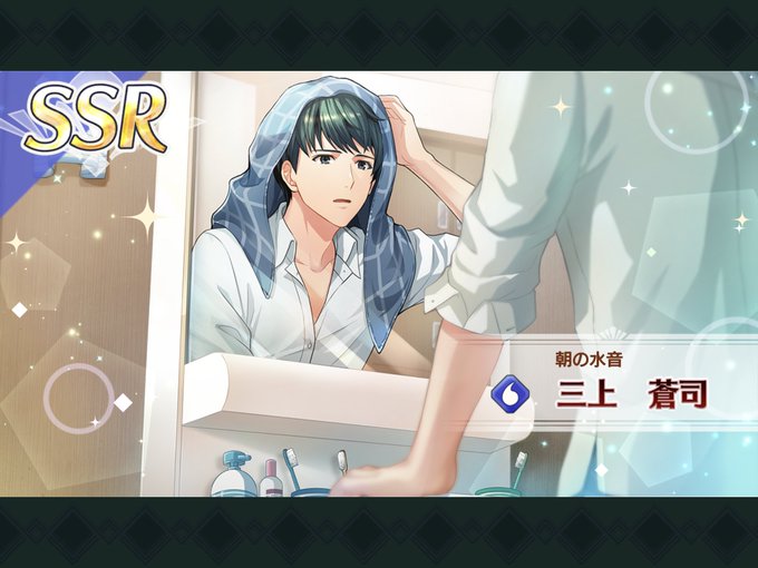 三上くん50連目でやっと✨✨(SSRはこの三上くん以外一切出なかったんだが!?!)SR竜崎銀河乙音弓原もお初という事実…そして今更ですがSR揃いました!!!