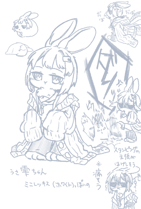 描くよね。ウサギの雫ちゃんラクガキ。ウサゆかさんより表情変わんないけどスタンピング(足ダン)のパターンが多そう。無言の圧力