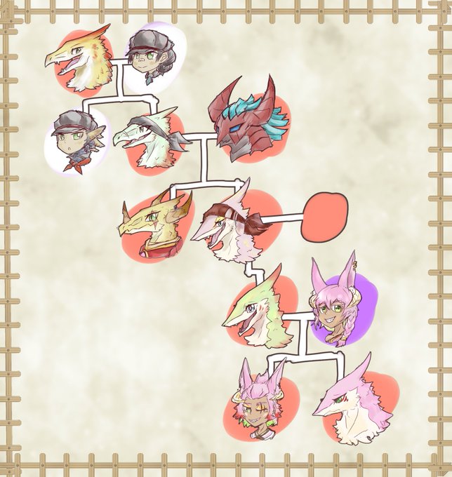 #梅雨のpkgフォロー祭り お見掛けしたので参加ー。でも新規絵少ないので不穏な近親者たちを集めてみました。家系図が必要なぐらいごちゃごちゃしてます。基本いいねお迎え。