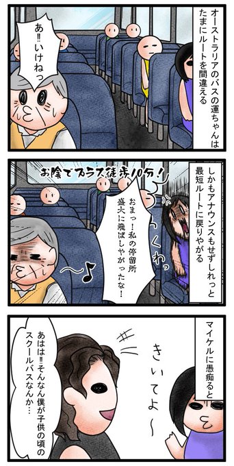 オーストラリアのバスはたまーにルートを間違えて走り、訂正もせずしれっと停留所を飛ばしたりする。その事でオージーの旦那に愚痴ったら旦那のスクールバスの運転手は生徒を乗せたまま下車してよくスーパーで買い物とかしてたらしい。やっぱオージーすげえ。