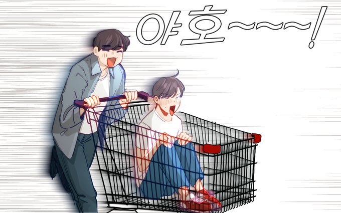 리퀘로 그린 마트에서 민우가 호빈이를 카트에 태우고 후루루 밀고가다가 직원분께 혼나는거...