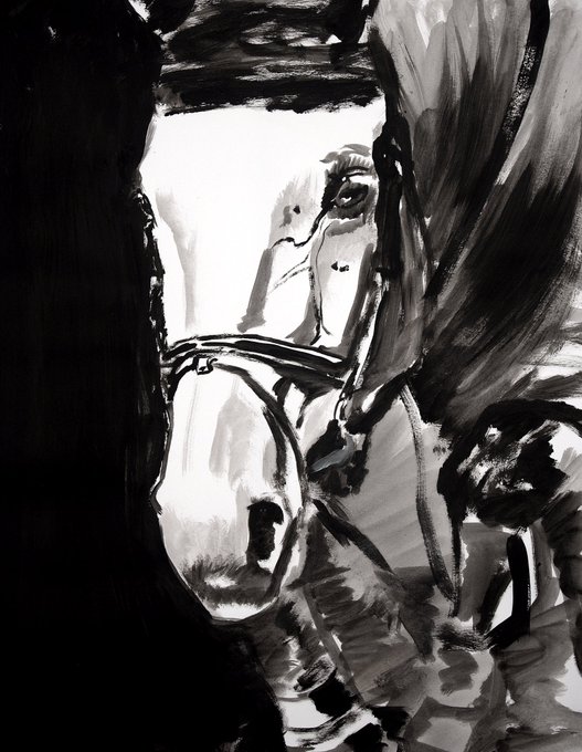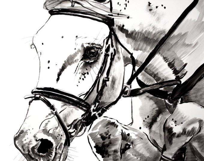 I’ll be offering 17 x 14 and 24 x 19 inch ink sketches at a discount over the shutdown #ink #equestrian
