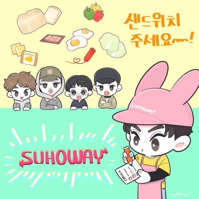 \🐱🐻🐧🐤/ 🍽🥪🥪🥪🥪🐰💦 #XIUMIN #SUHO #KYUNGSOO #KAI #SEHUN #exofanart