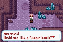 En la isla nos metemos en esta cueva que... oish, que pantalla tan bonita, se ve ahí en una esquina el Clefairy. LGM ya hemos dicho que es mal Pokémon y esta enfermera nos cura si le ganamos. Tiene un Blissey con Toxico, Deseo y Protección... imagino que el cuarto es Mov. Sismico