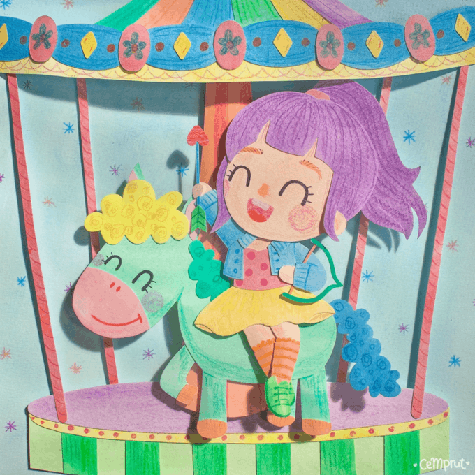 Moondrop! Younger sister to Sunspot. Silly, intuitive, and very stubborn, Moondrop fixes the stars and paints the night sky! She's a thinker and a tinkerer..picture Rapunzel from Tangled + Winry from FMA :)