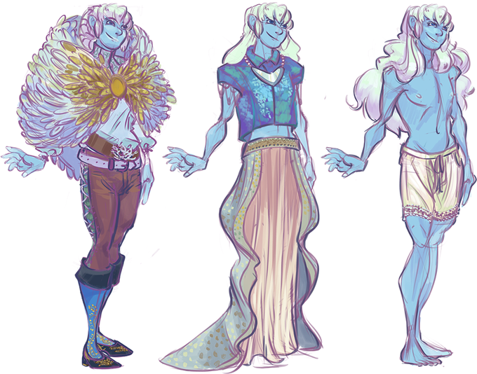 i wanted to do some paper dolls w/ zephyr, my most fashionable dnd character! outfits for travel, casual, and undies!