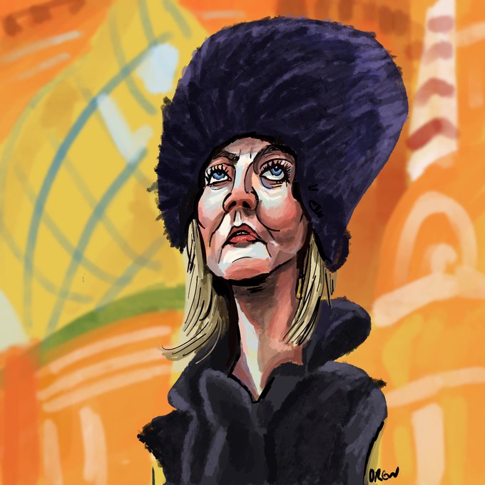 Liz Truss all over the news again claiming stuff folk know isn't true about not breaking international law or saying things about fighting in Ukraine. She might be fun to draw but is just as capable as wrecking havoc as Boris