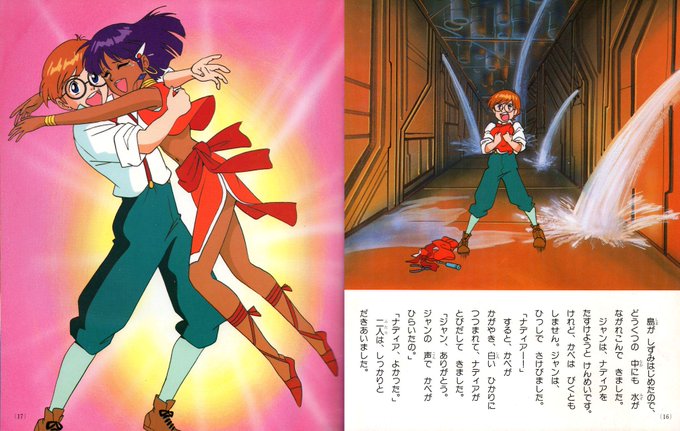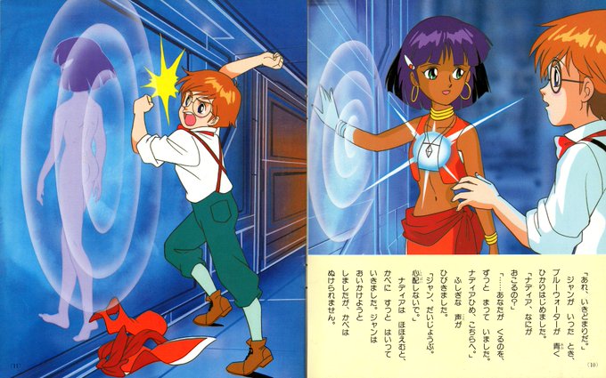 設定だとナディア140歳のお誕生日だそうで。先日貼った宮尾岳先生作画「たのしい幼稚園TVデラックス絵本・ふしぎの海のナディア」より。衣装を置いて壁に消えたナディアでしたが、帰還時には1ミリ秒で着つけ終わっていましたw #ナディア生誕祭
