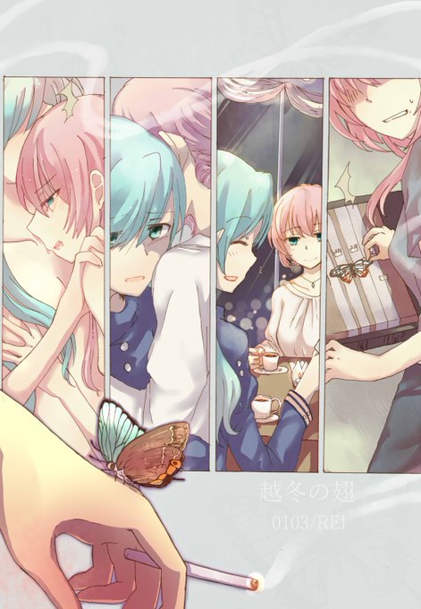 リクエストボックス絵)REIさん(@rei0103 )の小説『越冬の翅』イメイラ描きました。まさかのご本人リクでした~。34歳ルカさんと24歳ミクさんのうつくしい現パロネギトロ。シーン一つとか選べなかった。虫が大丈夫な方はお通販されてるからぜひ…!リクありがとうございました!