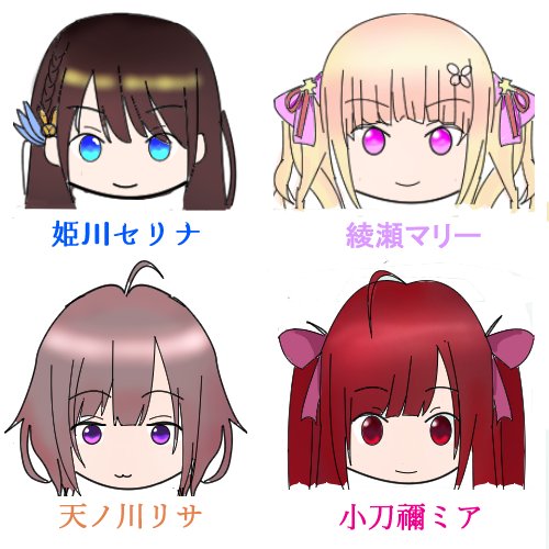#勇者ズム #セリアート #リサアート #ことミアート #MariArt デフォルメで4人描いてみました。 下手くそですが、少しでも可愛さが伝われば嬉しいです。