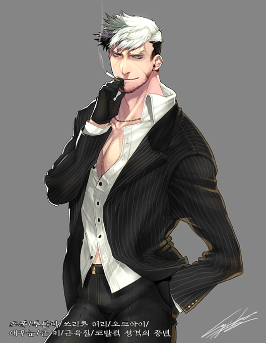 진단메이커가 [조폭/투블럭/쓰리톤 머리/오드아이/애꾸눈/큰 키/ 근육질/도발적 성격]으로 중년을 그리라길래 나름대로 노력해 봤음 / 診断メーカーさんがこんなおっさん描けよと言ったので私なりに頑張ってみた。