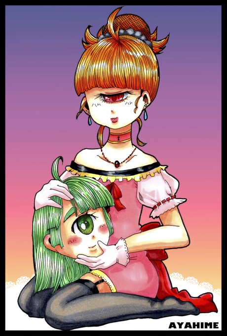 #単眼版深夜の真剣お絵描き60分一本勝負 お題は「癒し」 ヒーラー単パーティin(昨日のネタ使い回し)