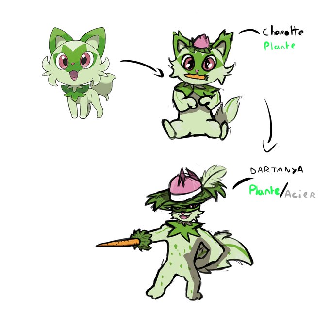 Avec des amis on a dessiné chacun des idées d'évolution pour les starters et du coup je propose mes idées pour le starter plante
