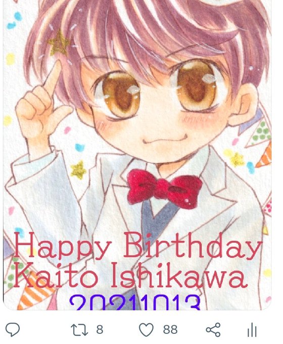 界人くんのおたおめイラスト丁度8RTと88イイネで末広がりー!!ってなりました。たくさん見て頂きありがとうございます!界人くん末長く活躍しておくれー