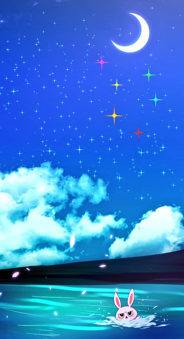 月から舞い降りる7人のうさぎをイメージしてます。平社員は飛べないので海に転落しました。どなたか浮き輪でも投げてあげてください。