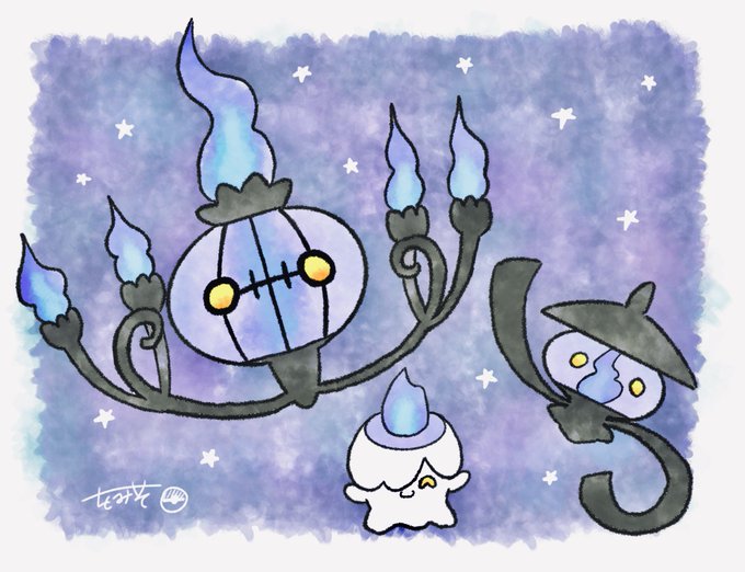 3枚目は前に描いた大好きな推しポケシャンデラ族🌷