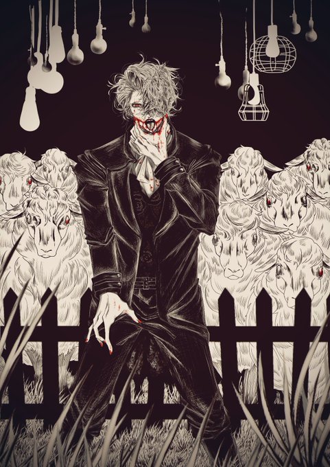 白黒の創作イラストを描いてます🦷🖤