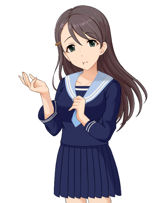 制服に地方別の型式があったことに驚き。改変時の違和感(比較と記憶の相違)はそれだったか。なお、立ち絵元本のうまいところに手が残り、結び目は見えない。一応下地に書いてはある。左手元の両脇にその名残が。