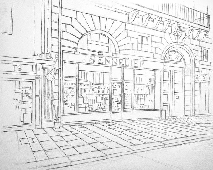 #皆さん線画と塗った後を見せてください パリにあるセヌリエ本店。いつか行ってみたいものですね😌🙏🙏 ※塗り絵とかにご利用どうぞ😆🙏 #透明水彩研究会 #watercolor #透明水彩