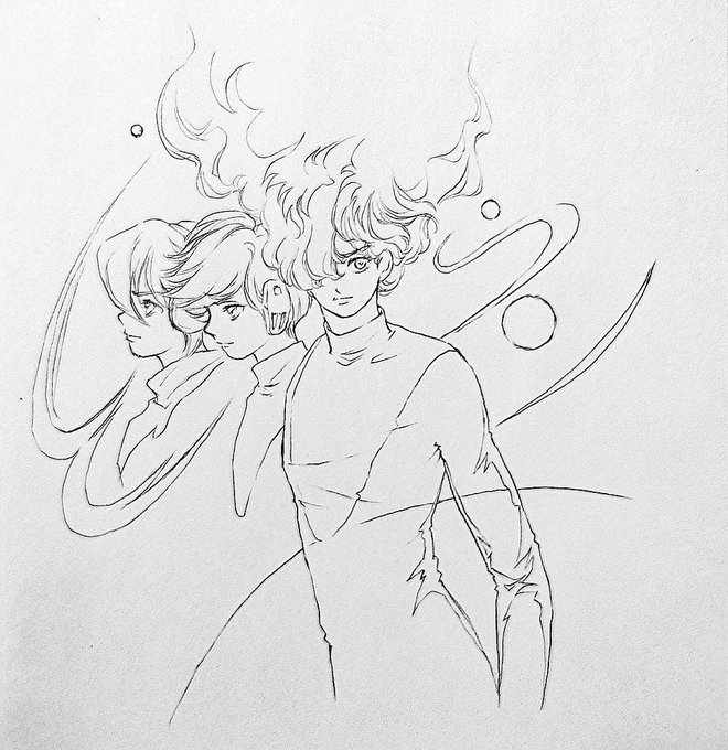 #皆さん線画と塗った後を見せてください ←シャープペンシル 油絵→