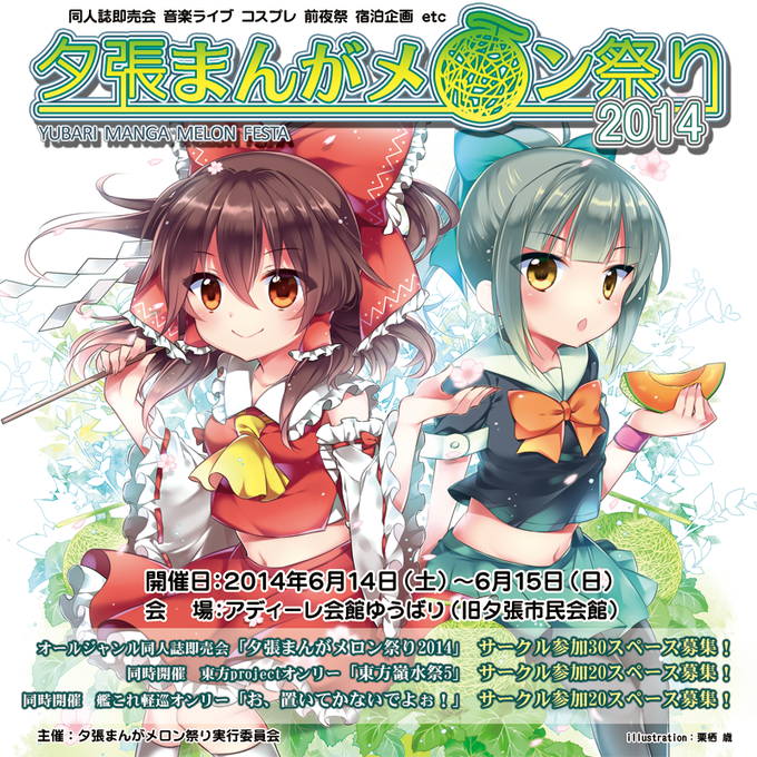 【開催決定】2014年6/14(土)~6/15(日)、夕張にて「夕張まんがメロン祭り」を開催決定!オールジャンル同人誌即売会に加え、東方オンリー、そして開催地夕張にちなみ艦これ軽巡オンリーの開催決定!!近日HPリニューアル予定です。