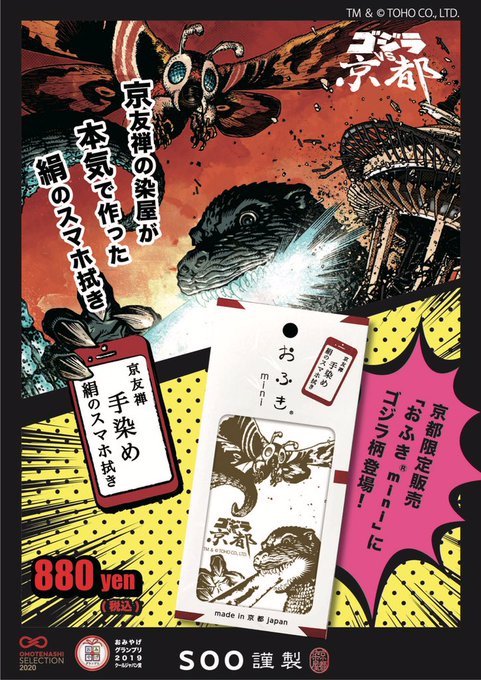 SOO謹製“おふきmini”のゴジラvs京都ver.を『ゴジラvs京都』ブースにて期間中、販売いたします😊