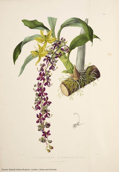 2/2 On the back cover is the beautiful Cycnoches egertonianum also from Bateman's The #Orchidaceae of Mexico & Guatemala. Collected in Guatemala by George Ure Skinner, it was one of the many orchids Bateman cultivated in his hothouses #Knypersley Hall https://t.co/czzP3UhJ5A