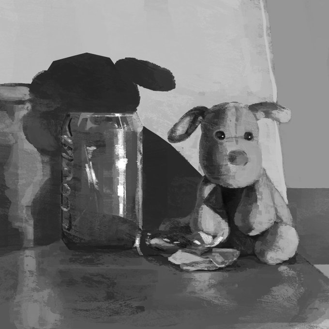 Schoolism class. Painted my teddy, scruffy, in diffused lighting then changing it to direct lighting. I found this a lot of fun and it's cool to see the difference in paintings! #トン活