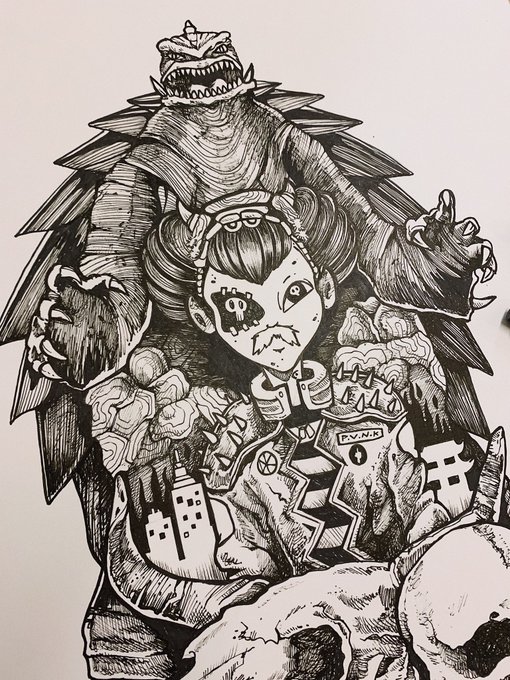 Borrowed @PVNKS_d3g3n's Super Geisha and some PVNKS aesthetic for this quick drawing exercise @CryptoGeisha Geisha and her pet Gamera ready for some rampage! ✍🏼⚡️ #GeishaGang #art #NFT