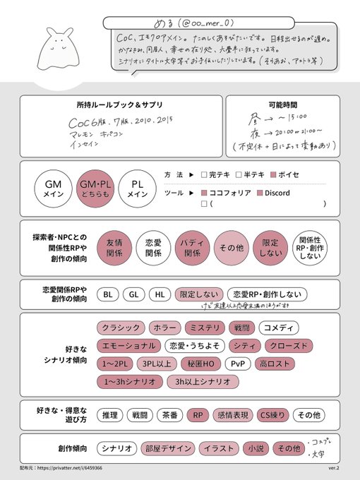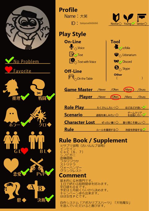#TRPG自己紹介シート #TRPG好きとつながりたい