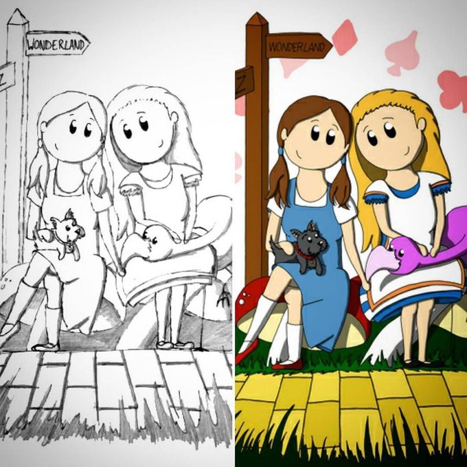 This commission is from a while back, and was one of my first attempts at digital drawing. Dorothy and Alice still look super sweet! :) #wo…