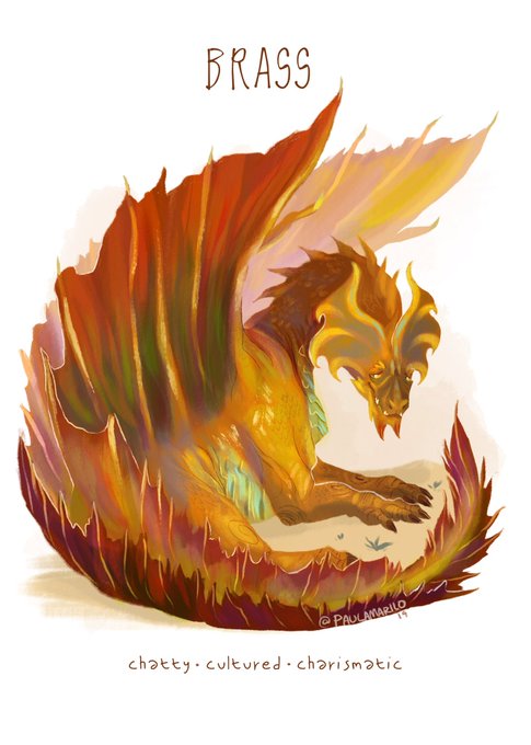 I imagine the Brass Dragon as the gentle giant of dragonkind, taking their sweet time to do things because there’s no rush. They fill their hordes with magic items that can make good conversation pieces.