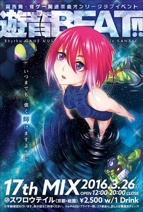 【画像間違えました。再掲】これから色んな所にフライヤー設置のお願いに参ります!ゲームセンターさん、BARやクラブ、同人ショップなどなど。フライヤーはこんな感じ! #遊音BEAT https://t.co/SvyMCRIoH0
