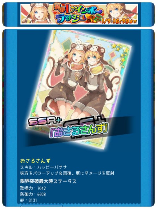 ミクコレさんでおさるさんなリンレンちゃんのカードを描かせていただきました!よろしくおねがいします!さっそくリンちゃんゲットした
