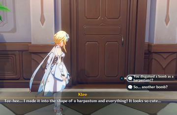 Рыцари обеспечивают безопасность для всех, но... Кли обещала сделать бомбу в виде гарпастума. Удачи, Мондштадт!