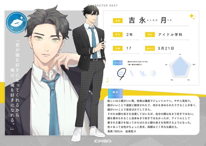 チャラい見た目ですが世話焼きで仕事には真面目なアイドルです。