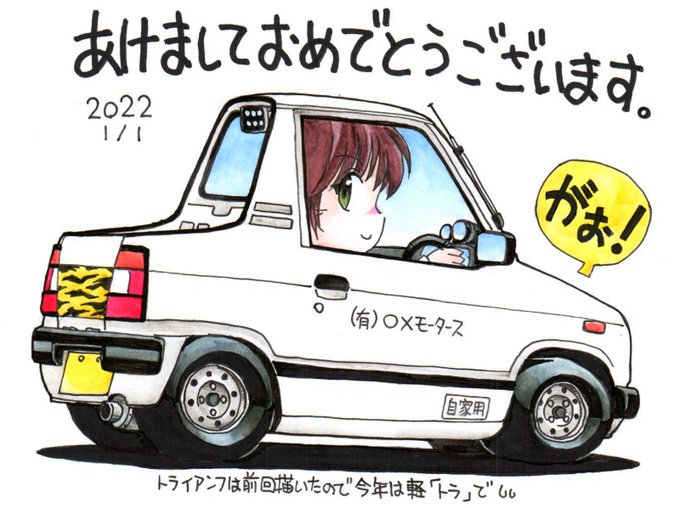 #あなたのしろ色の作品を見せてください 年賀イラスト2年連続で白いクルマ😅