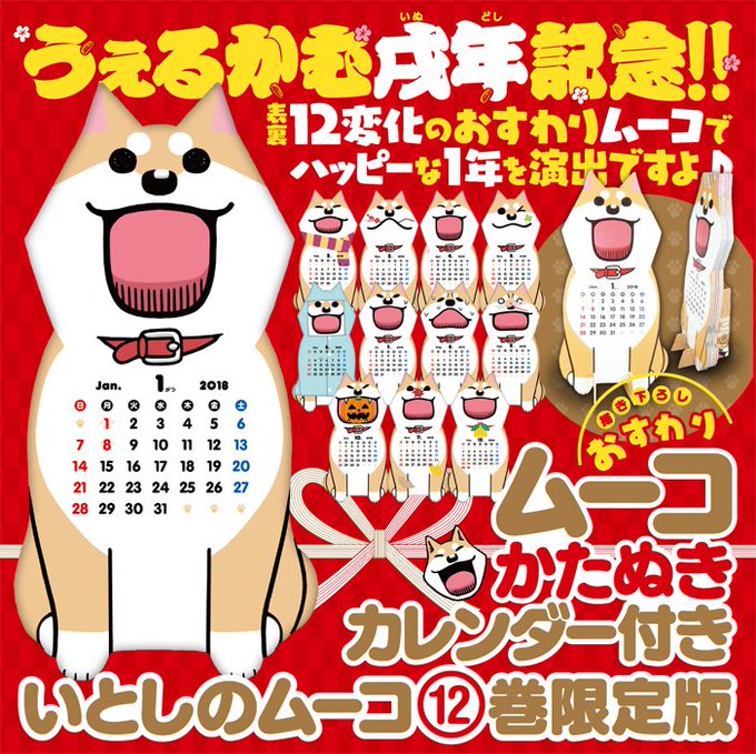 待望の『いとしのムーコ(12)/みずしな孝之 @sinamism :著』本日発売です!!今回の限定版は『かたぬきカレンダー付き』です。とてもかわいい仕上がりです。うしこうさんの恋がついに!カバーデザインなど担当しております。来年は戌年!詳細→ https://t.co/Iq8BkJRYZi