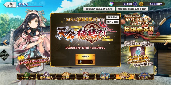 うたわれLF、イベントポイント交換でクオンさんをお迎え (`・ω・´)ゝ。ポイントを貯めるために手持ちのスキップチケットの大半を使ってブン回したなど。つーか、100%げっとの結糸と交換させてまでガチャ演出にする意味は?w ( ̄∇ ̄;) >クオン[術師見習い](CV:種田梨沙)