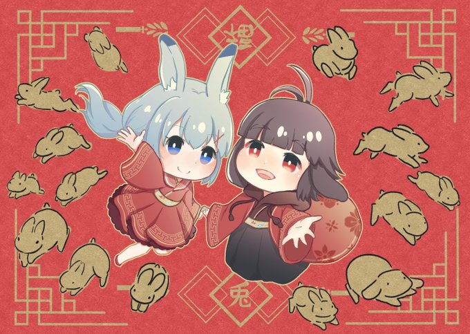 うさみみの女の子2人組を描いています! 青い方がゆきので、茶色い方が緋色です!! #これを見た人は2人組の画像を貼れ