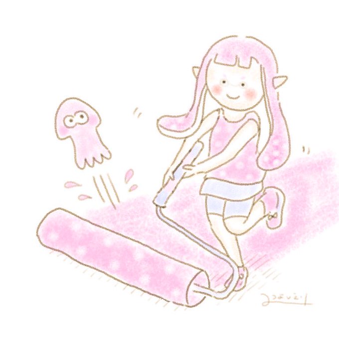すぷらとぅーん2 はじめました。 ローラーでころころするの たのしい☺️ #イラスト #スプラトゥーン2 #イラスト好きな人と繋がりたい
