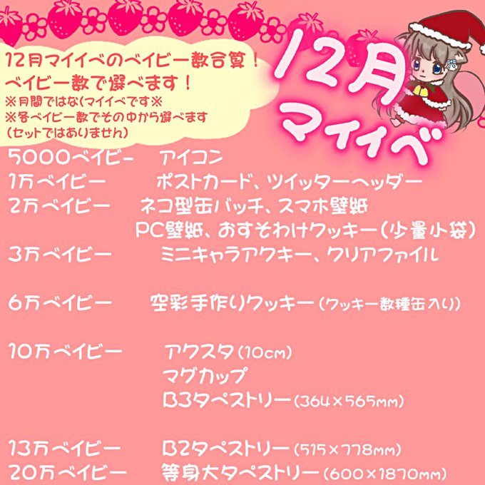 月末にプライズ対象者にはPt数分のプライズ選んでもらうDM送りますが6万ベイビー行っていて決まってる方は、DMで早く言っても大丈夫です!