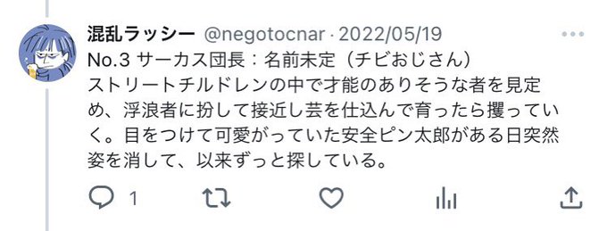 サングラスを見て思い出とか回想させようかなと思ったんだけど、このサングラスってサーカスおじさんから貰ったものになるはずだよな。そんなに宝物になるほどの感動をこの偽浮浪者サーカスおじさんから貰うのか?それでいいのか安全ピン太郎?