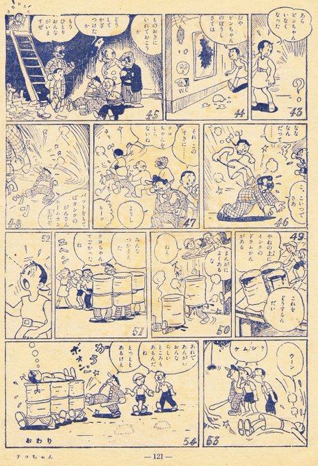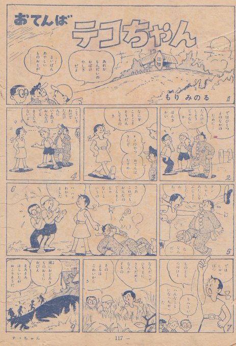 ちょっと見にくいが、もりみのるさんの連載漫画「おてんばテコちゃん」昭和20年代。