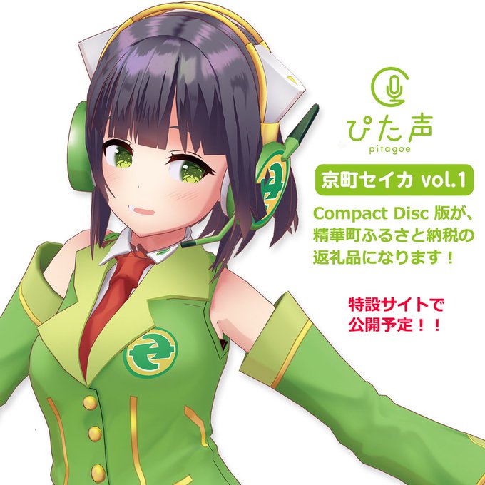 本日もう一つ、お知らせします!「京町セイカ歌声創造プロジェクト」目標の一つだった「公式立ち絵の制作」としまして、高画質版立ち絵の素材集をCD版でふるさと納税返礼品といたします。こちらも明日9/29中に町の特設サイトにて公開予定です!! #京町セイカ